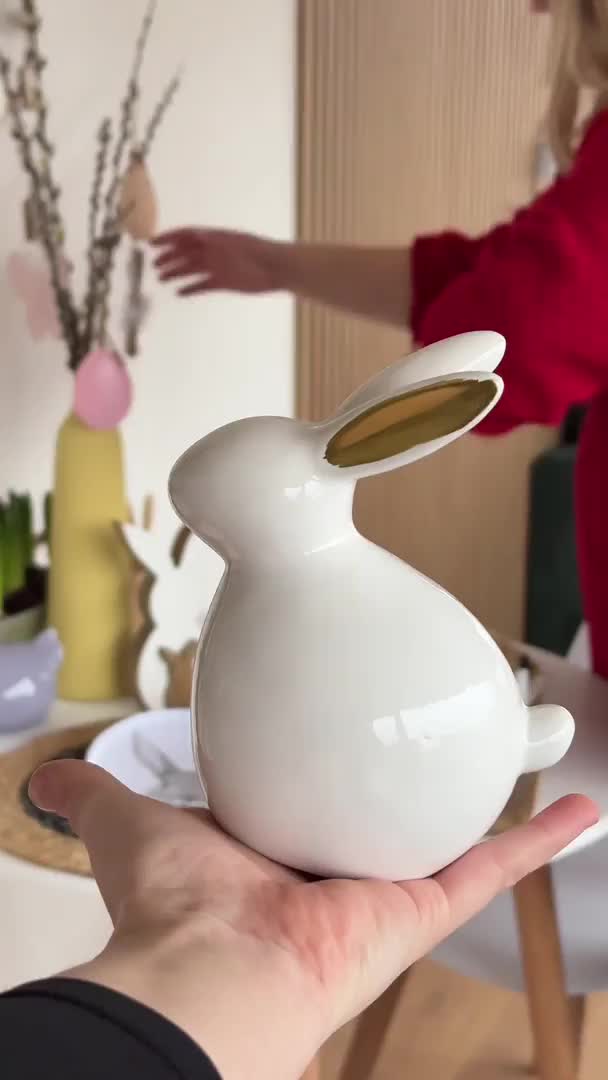 Keramický zajíček GILDED BUNNY 14 cm bílý