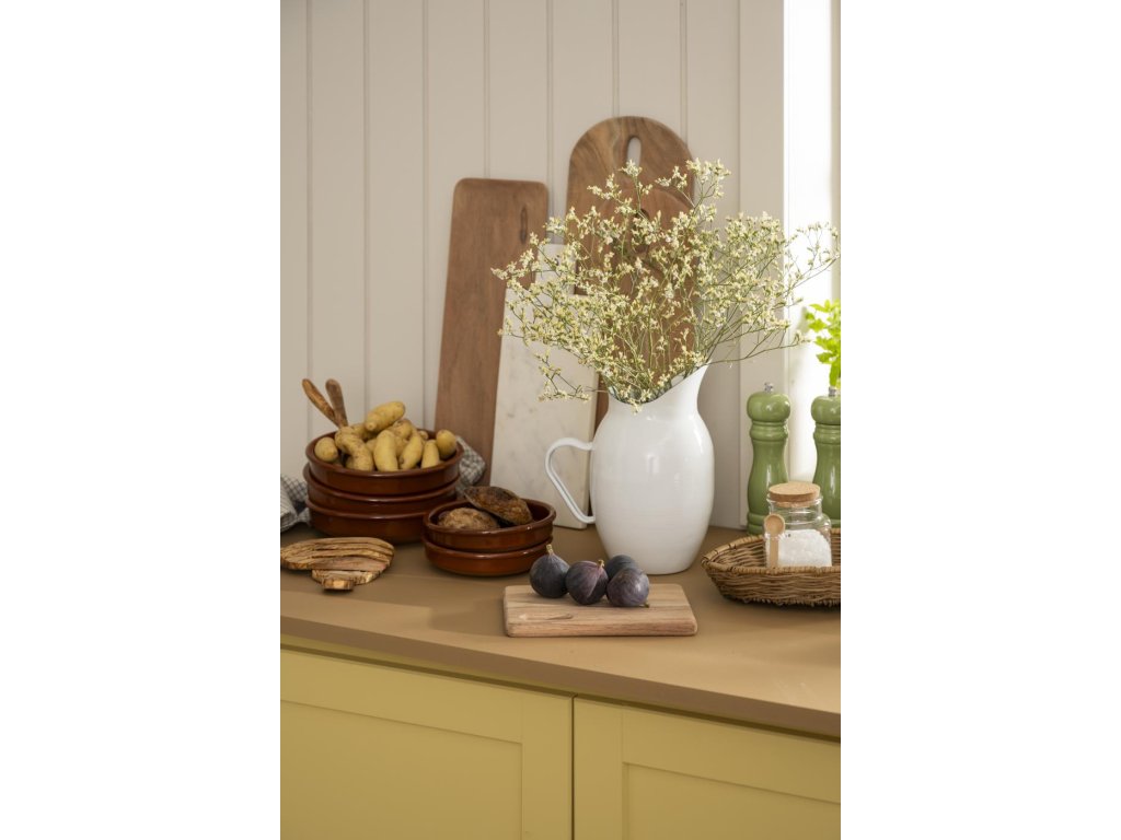 Tato akáciová deska je dokonalým spojením praktičnosti a elegance. Díky své robustnosti a krásné kresbě dřeva se hodí pro podávání sýrů, pečiva nebo jako dekorativní podložka. Ruční mytí zajišťuje dlouhou životnost a zachování přirozené krásy materiálu. Tento kousek dodá vašemu stolování hřejivý přírodní nádech a zaujme každého hosta.