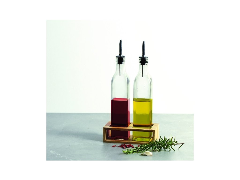 - Stylová dochucovací sada na olej a ocet v bambusovém stojanu