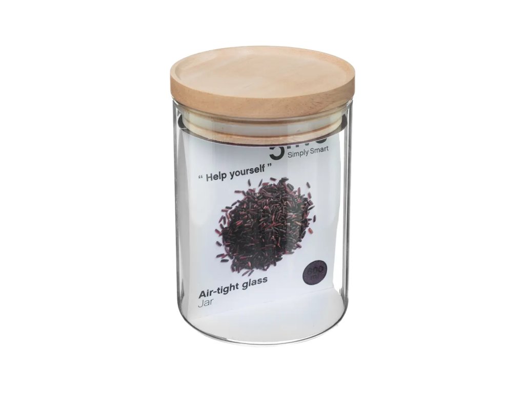 Skleněná dóza na potraviny JARWO s dřevěným víkem 600 ml
