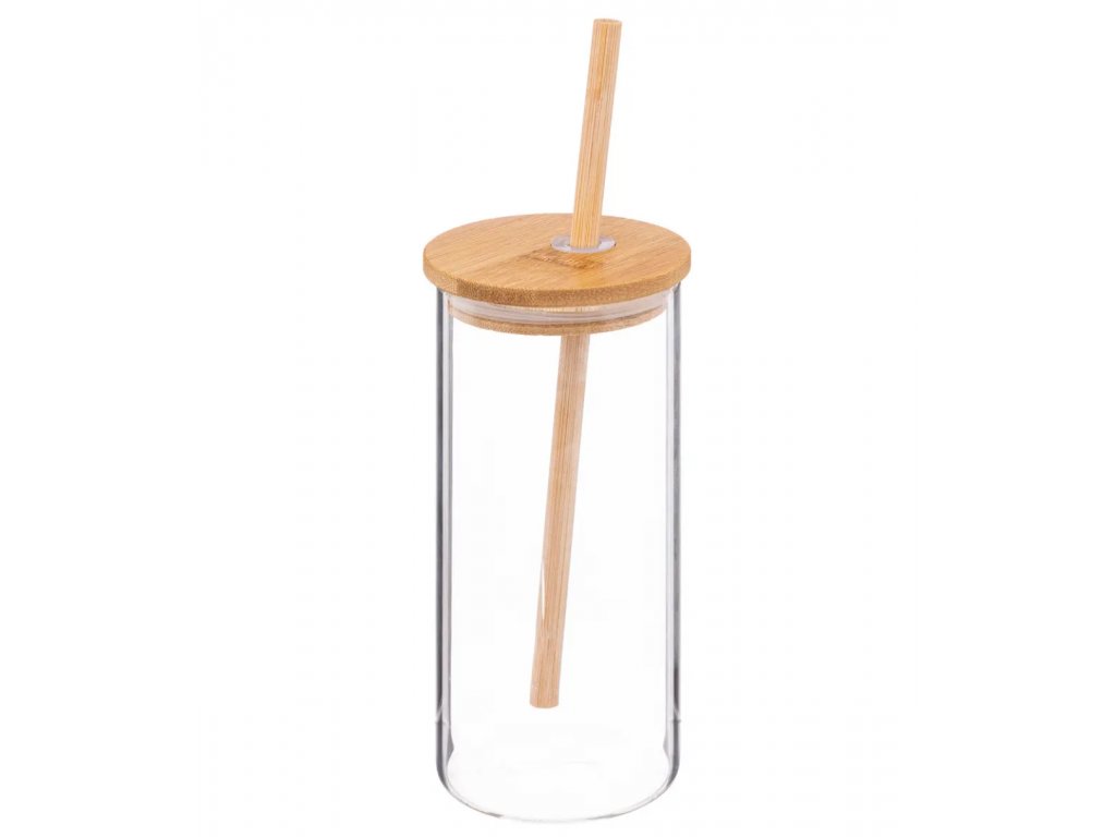 Sklenice s bambusovým víkem a brčkem PALM 400 ml