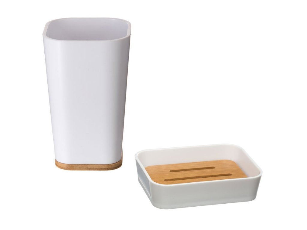 - Sada obsahuje držák na zubní kartáčky a misku na mýdlo