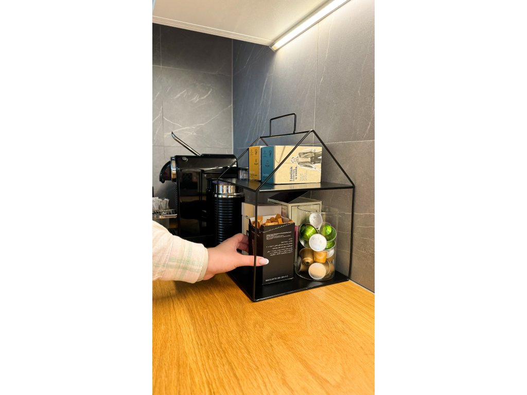 AKCE Černý kovový regál ve tvaru domečku SENZA, II.jakost