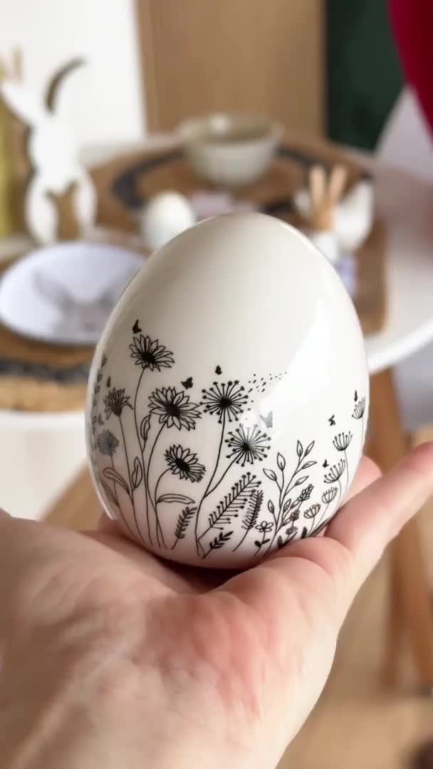 AKCE Keramické vajíčko s květinami FLORAL EGG bílé II.jakost