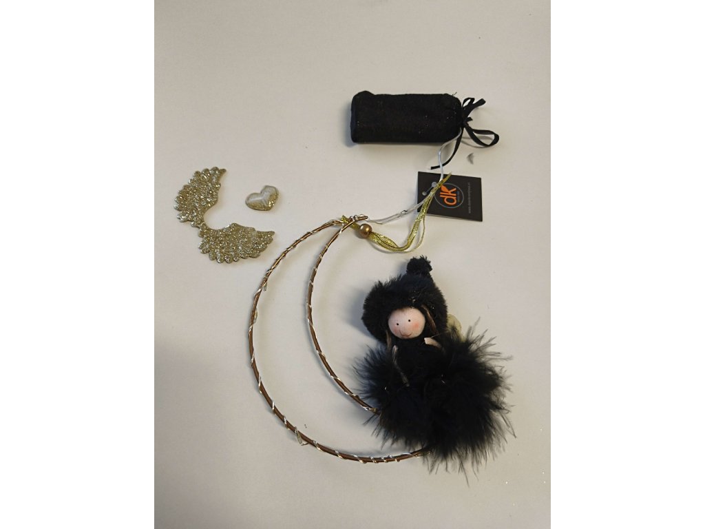 AKCE LED závěsný černý anděl MOONY, 16 cm II.jakost