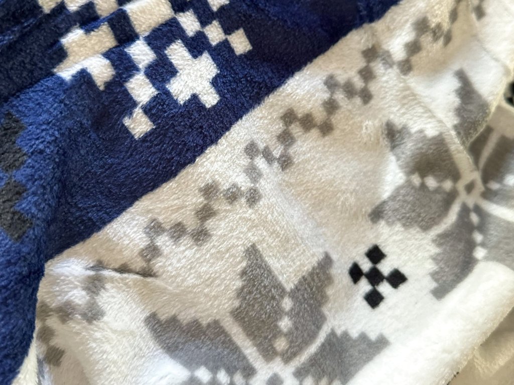 Detail materiálu je velice jemný, měkký a přejemný na omak. Na povrchu můžete zahlédnout drobné smyčky z bavlněných vláken, které udávají textilii její pozitivní vlastnosti a utvářejí její 3D efekt. Smyčky jsou ze spodní i horní strany základového materiálu, pod lupou vypadají opravdu nadýchaně. Podobný detail jako bavlna má i vlna, která je velice tenká a hebká.