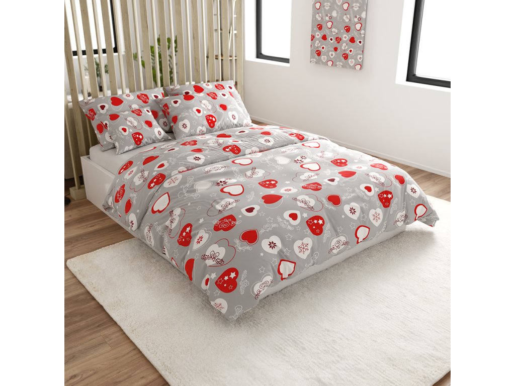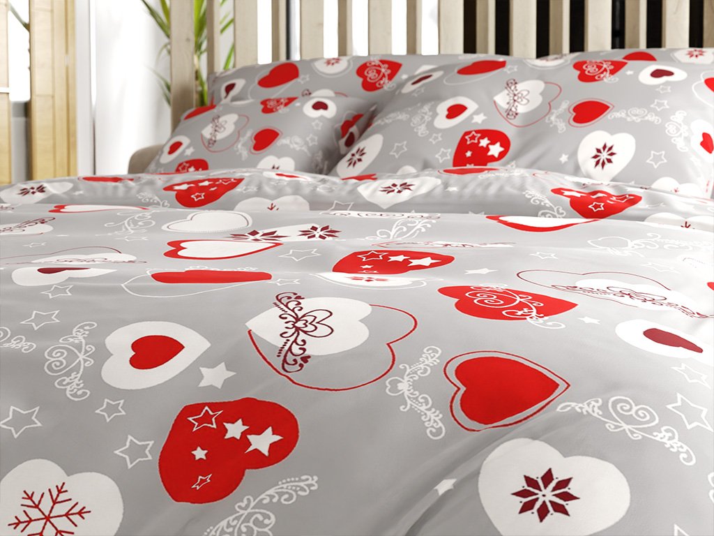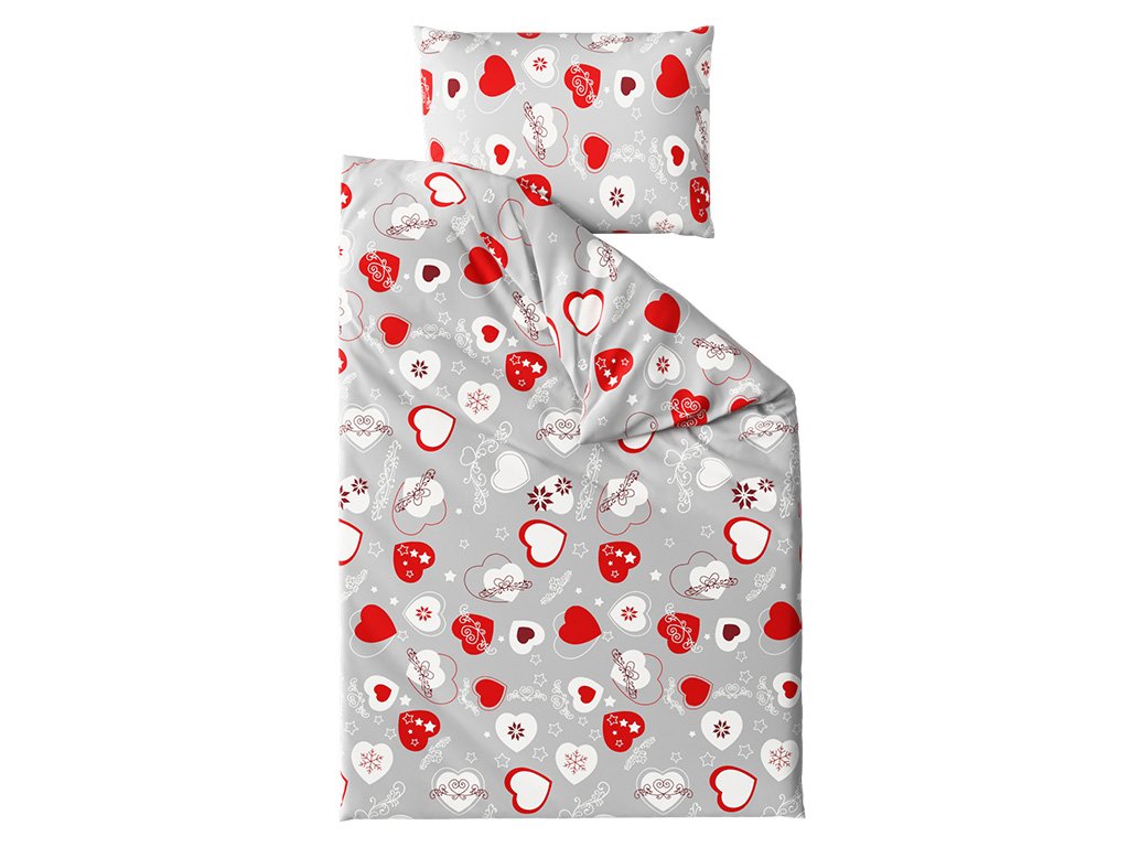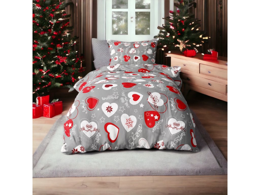 Flanelové povlečení VÁNOČNÍ SRDCE šedé