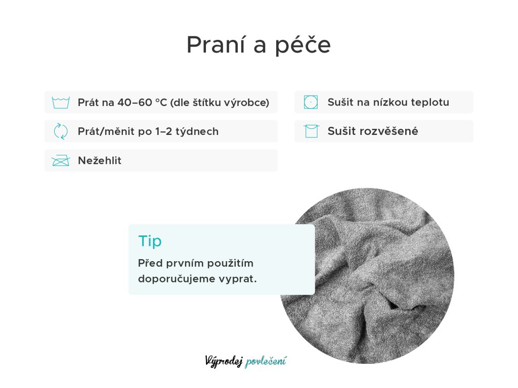 - Doporučené praní: každý týden, maximálně 1x za 14 dní