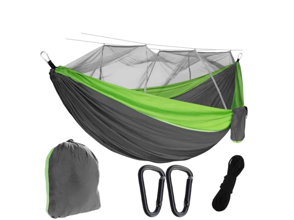 - Houpací síť má rozkládací moskytiéru