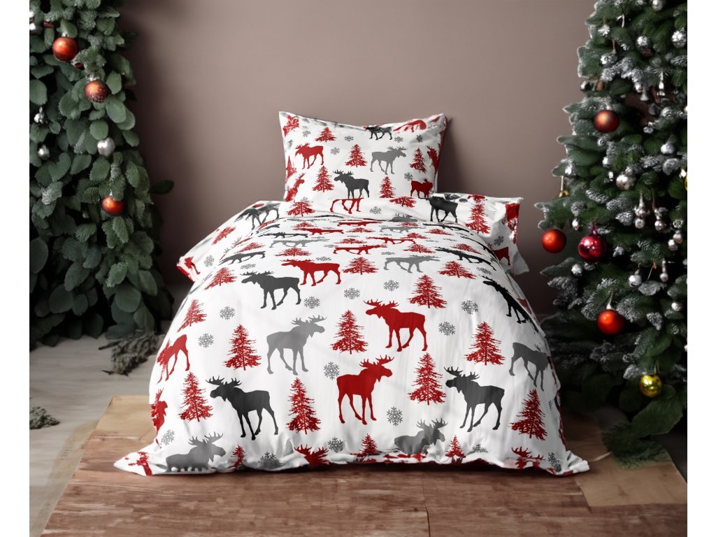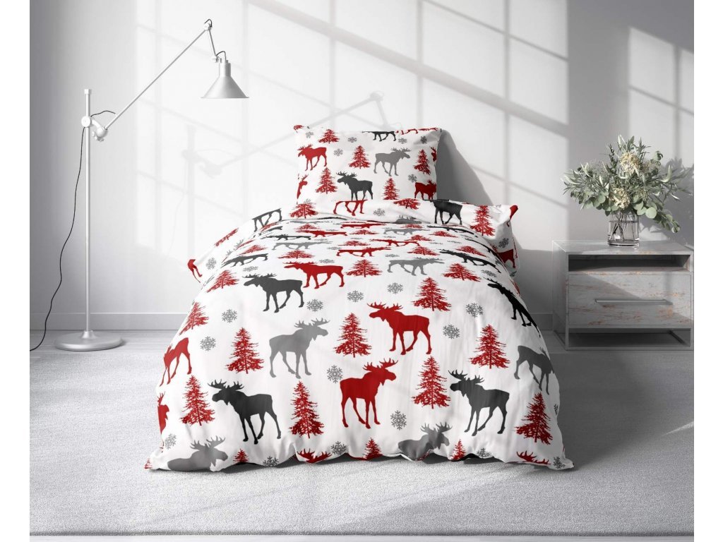 Flanelové povlečení VÁNOČNÍ LOS bílé + prostěradlo mikroplyš SOFT 90x200 cm bílé