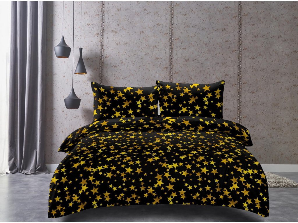 Povlečení z mikrovlákna PALOMA černé + prostěradlo jersey 90x200 cm žluté
