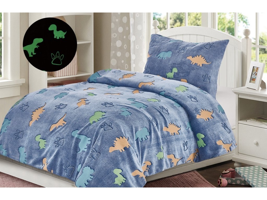 Svítící povlečení mikroplyš JEŠTĚŘI modré + prostěradlo mikroplyš SOFT 90x200 cm černé