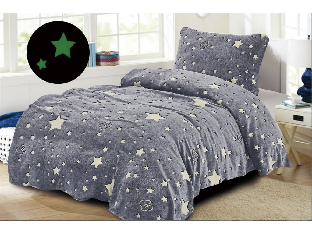 Svítící povlečení mikroplyš UNIVERSE šedé + prostěradlo mikroplyš SOFT 90x200 cm světle šedé