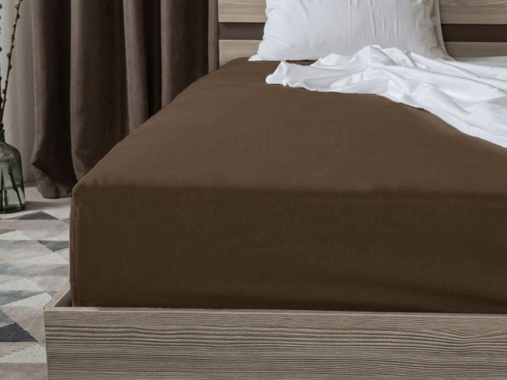 Jersey prostěradlo s lycrou tmavě hnědé 180 x 200 cm