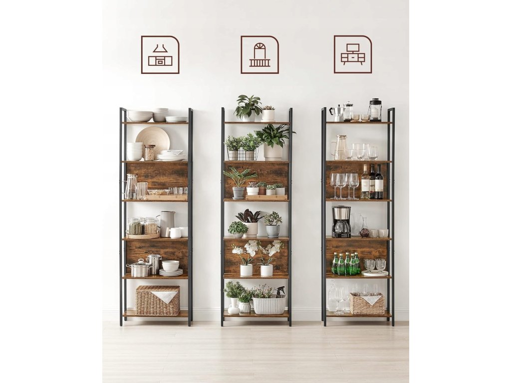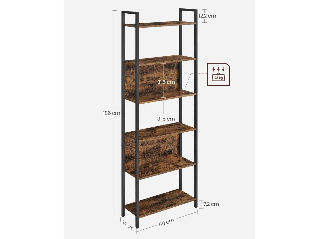Knihovna TAYLOR 6 polic 186x60cm, rustikálně hnědá