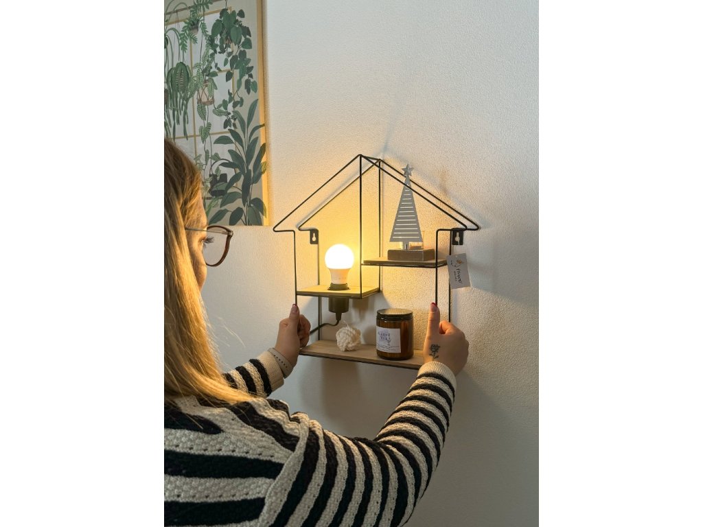 Nástěnná police s lampičkou HOUSE, 40 cm