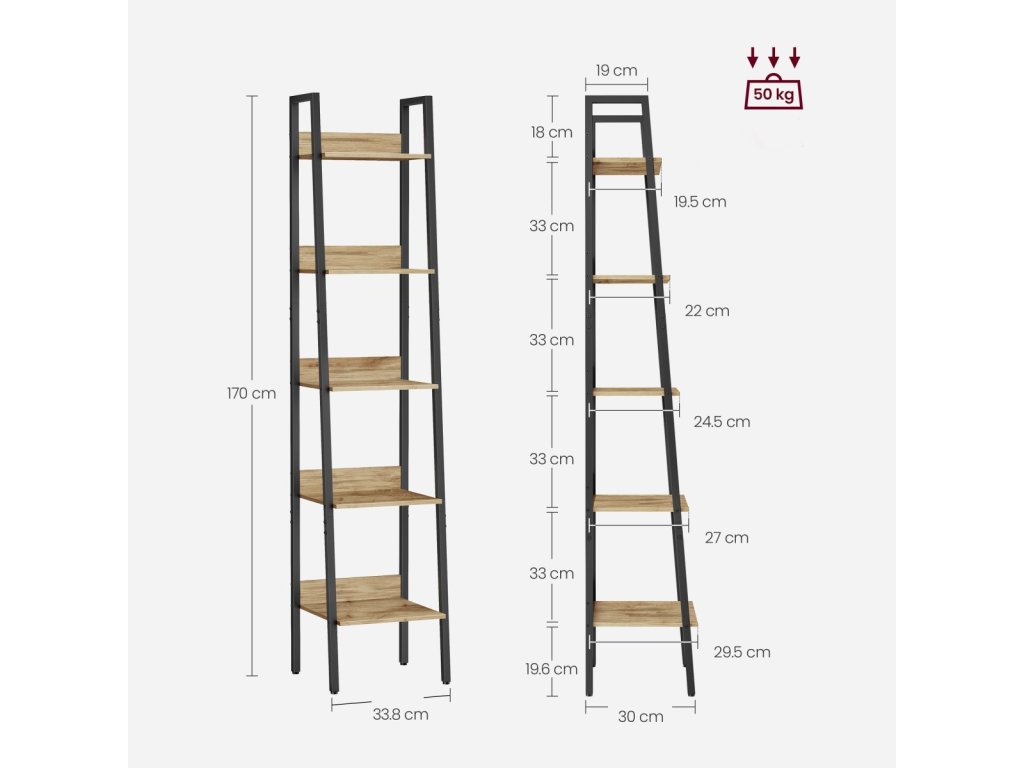 - Moderní design se schodovitě uspořádanými 5 policemi