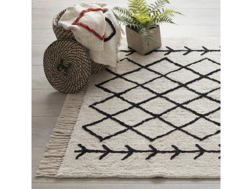 Černobílý bavlněný koberec se vzorem DELFT 120 x 170 cm