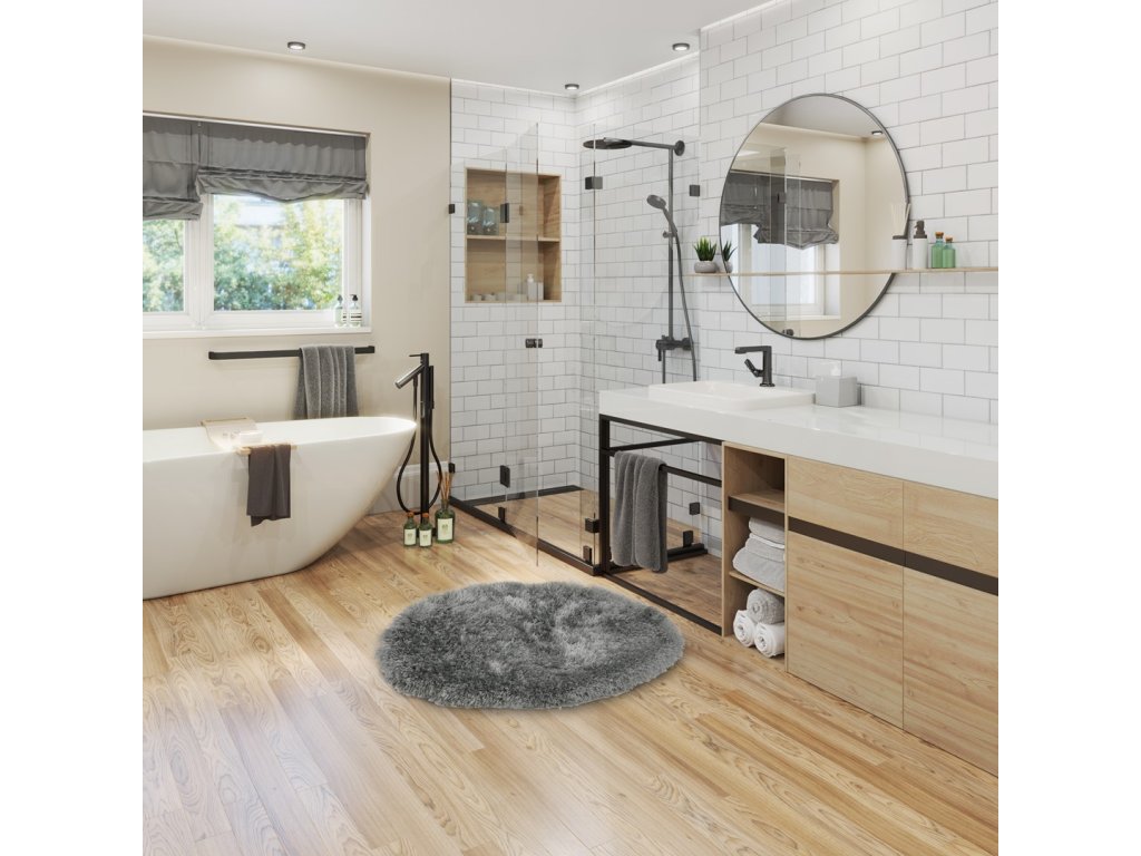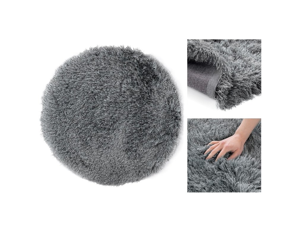 Kulatý tmavě šedý koberec FLORO 80 cm s vysokým vlasem