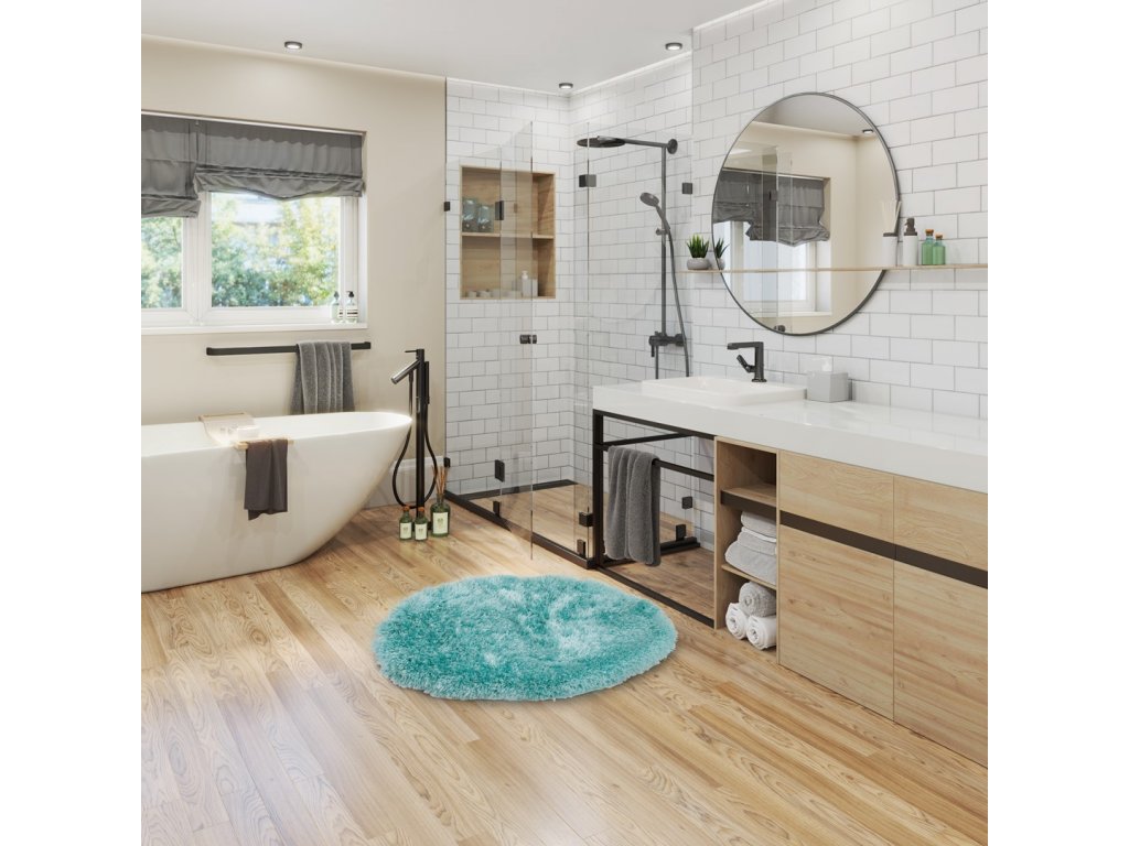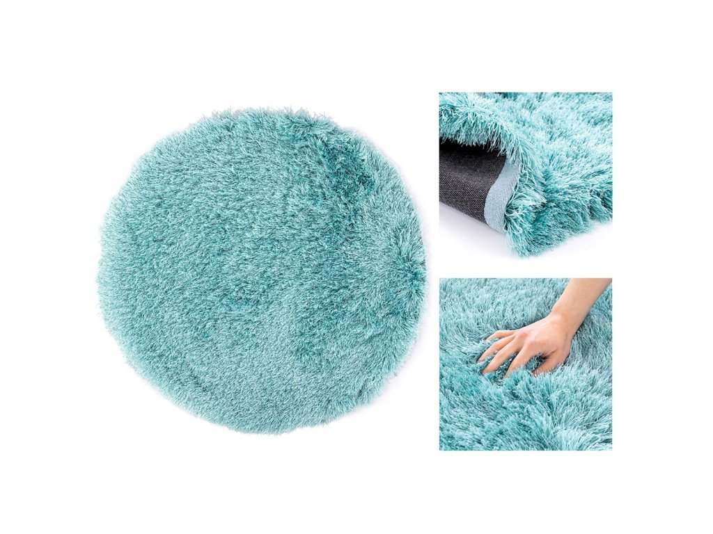 Kulatý tyrkysový koberec FLORO 80 cm s vysokým vlasem