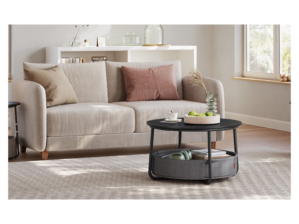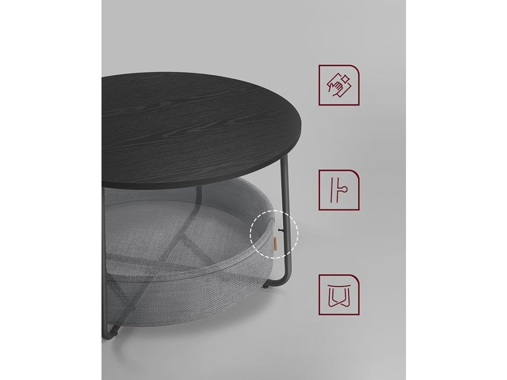 Tento konferenční stolek v hygge stylu je nejen estetickým doplňkem, ale také praktickým pomocníkem do vašeho obývacího pokoje. Kulatý design s černou deskou a kovovou konstrukcí působí elegantně a moderně, zatímco šedý látkový koš poskytuje prostorné úložiště na časopisy, deky nebo drobnosti. Protiskluzové nožičky zajišťují stabilitu a chrání podlahu před poškrábáním. Tento stolek přináší dokonalou rovnováhu mezi funkčností a útulnou atmosférou.