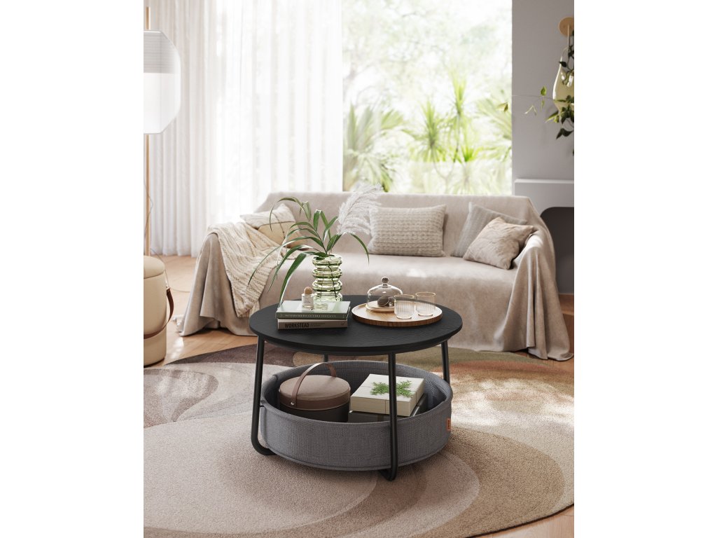 Konferenční stolek SALMA s odkládacím košem, Ø 75 cm, černý
