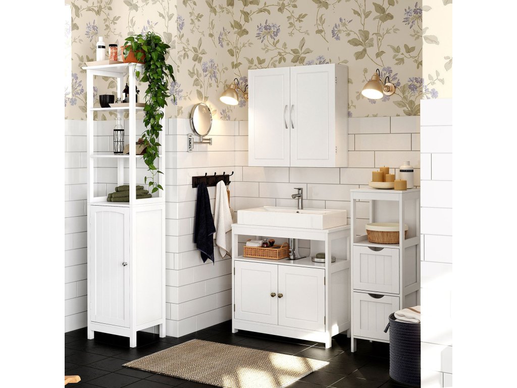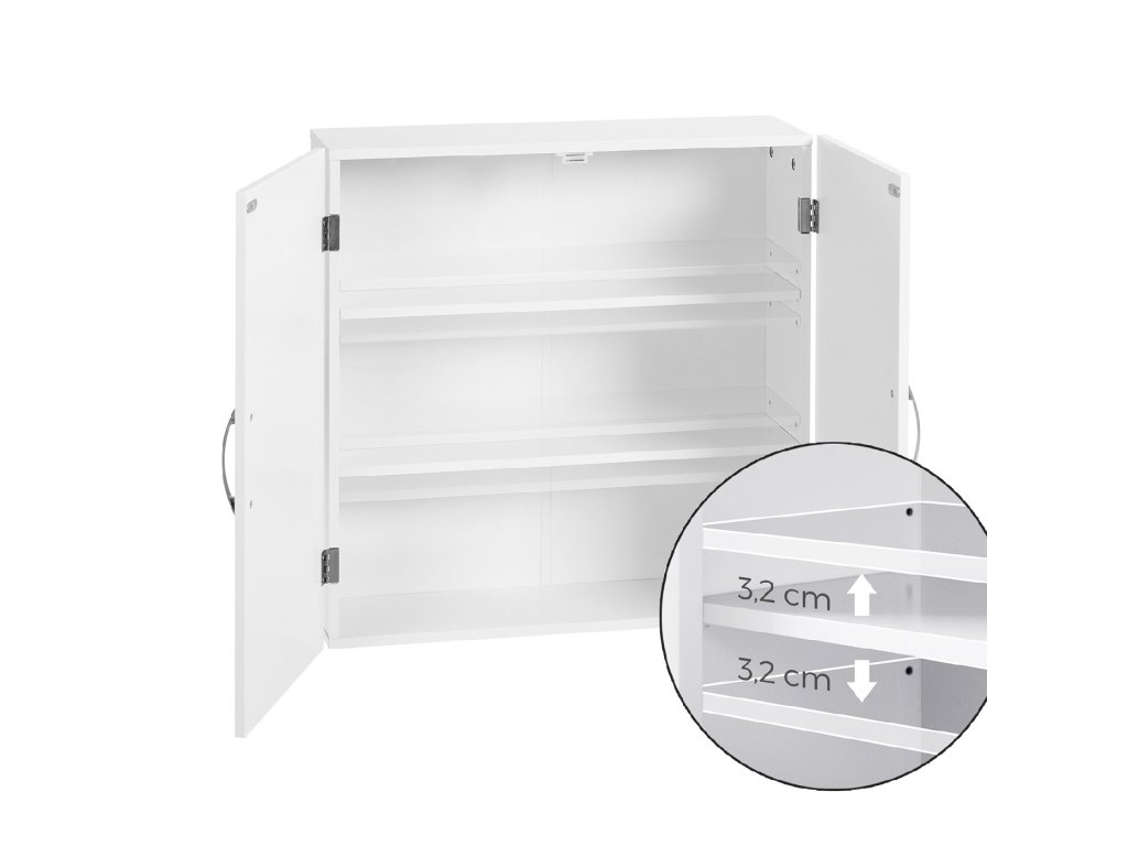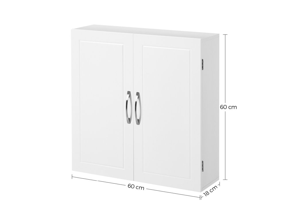 Tato nástěnná skříňka je ideální volbou pro uspořádání vašich věcí v koupelně, kuchyni nebo předsíni. Dvoje dvířka ukrývají praktický úložný prostor s nastavitelnými policemi, díky kterým snadno přizpůsobíte vnitřní uspořádání svým potřebám. Robustní konstrukce z MDF desky odolné vůči vlhkosti zajistí dlouhou životnost, zatímco elegantní bílá povrchová úprava přinese do vašeho interiéru moderní nádech. Magnetické zavírání a praktické úchyty zaručují pohodlné používání. Tato skříňka představuje praktické a stylové řešení pro každý domov.