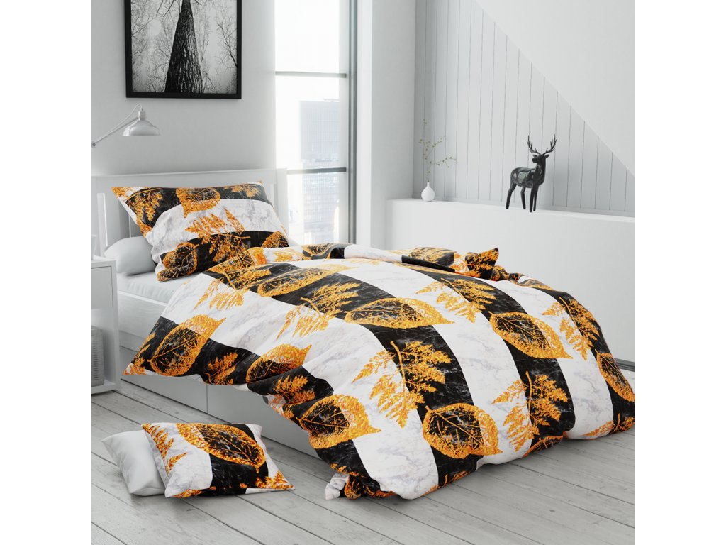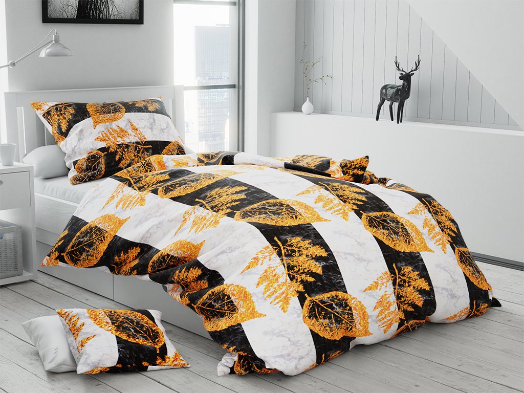 Krepové povlečení GOLDEN LEAVES bílé