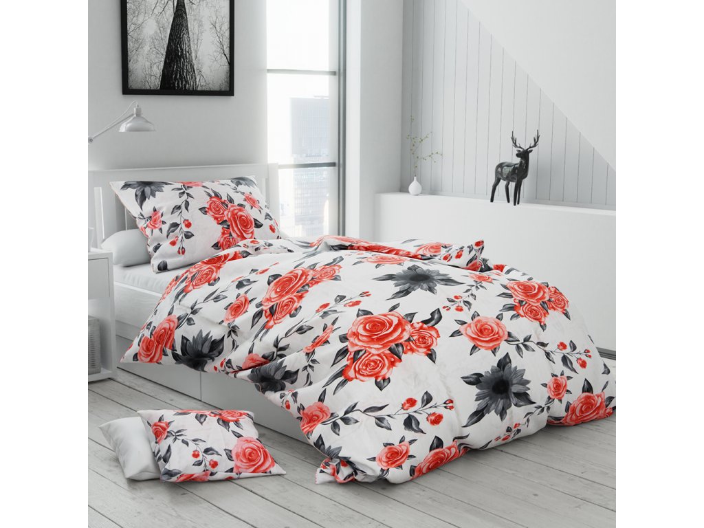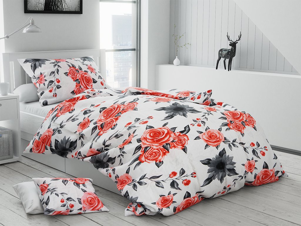 Krepové povlečení RED ROSES bílé + povlak na polštářek 40 x 50 cm zdarma