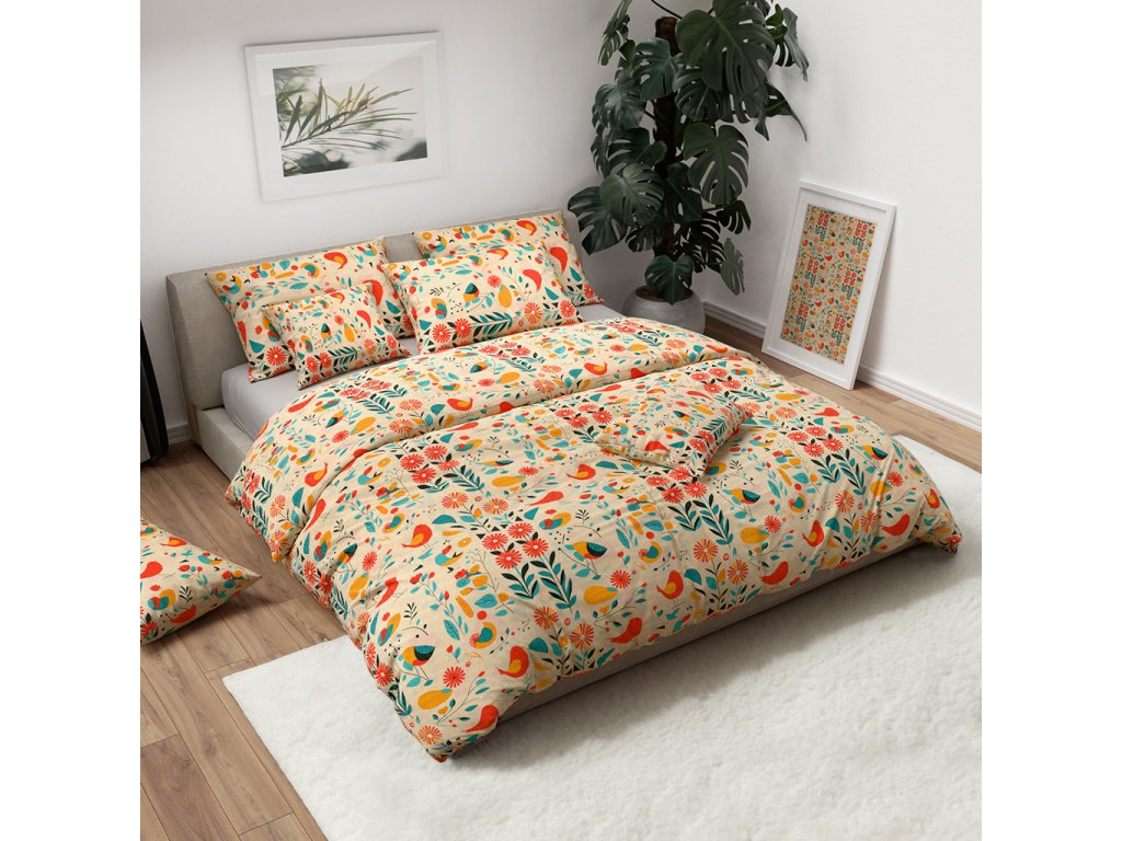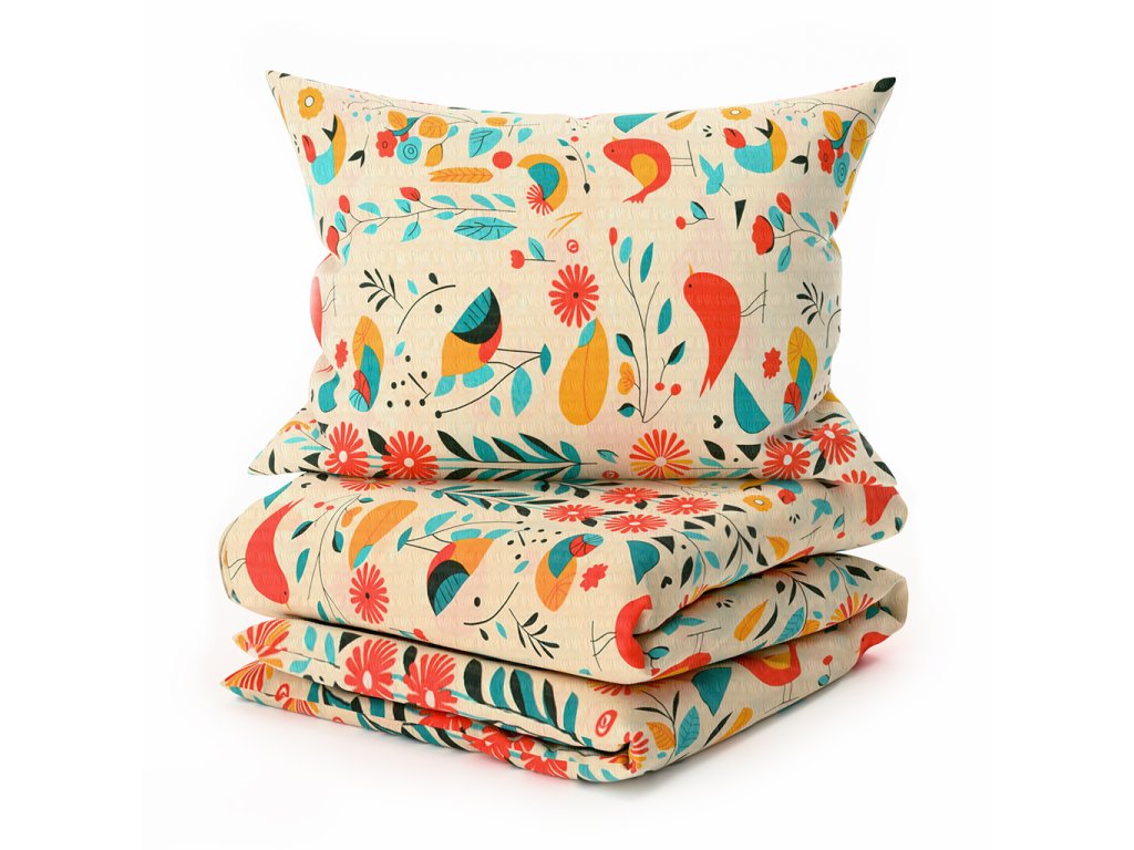 Krepové povlečení RETRO BIRD barevné