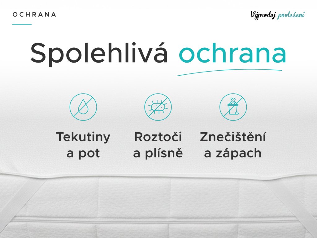 Ochrana matrace je důležitější, než si myslíte. Každý člověk, ať dítě nebo dospělý se přirozeně potí. Během noci vypotíme až litr potu, který se vsákne do prostěradla a jádra matrace. Chránič matrace celkově zvýší hygienu lůžka. Navíc chrání před mechanickým poškozením, znečištěním, roztoči, potem i močí. Jedná se o skvělého pomocníka na dětské postýlky nebo první postele. Své místo má také u dospělých jako běžná ochrana matrace, u seniorů nebo dlouhodobě nemocných, kteří jsou upoutáni na lůžko. Voděodolný chránič vytvoří ochrannou a tekutinám nepropustnou vrstvu. Pocitu spánku na igelitu se bát nemusíte, horní vrstva chrániče je vyrobena z mikrovlákna, které je šetrné k pokožce a příjemné na dotek.