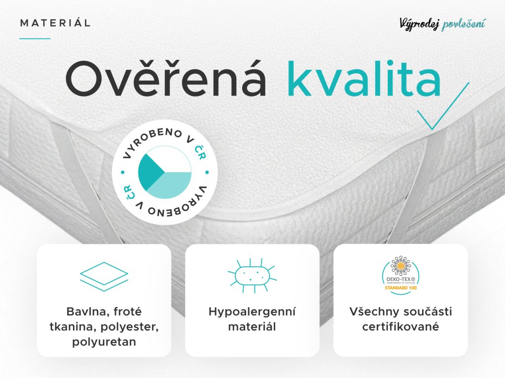 Ochrana matrace je důležitější, než si myslíte. Každý člověk, ať dítě nebo dospělý se přirozeně potí. Během noci vypotíme až litr potu, který se vsákne do prostěradla a jádra matrace. Chránič matrace celkově zvýší hygienu lůžka. Navíc chrání před mechanickým poškozením, znečištěním, roztoči, potem i močí. Jedná se o skvělého pomocníka na dětské postýlky nebo první postele. Své místo má také u dospělých jako běžná ochrana matrace, u seniorů nebo dlouhodobě nemocných, kteří jsou upoutáni na lůžko. Voděodolný chránič vytvoří ochrannou a tekutinám nepropustnou vrstvu. Pocitu spánku na igelitu se bát nemusíte, horní vrstva chrániče je vyrobena z mikrovlákna, které je šetrné k pokožce a příjemné na dotek.
