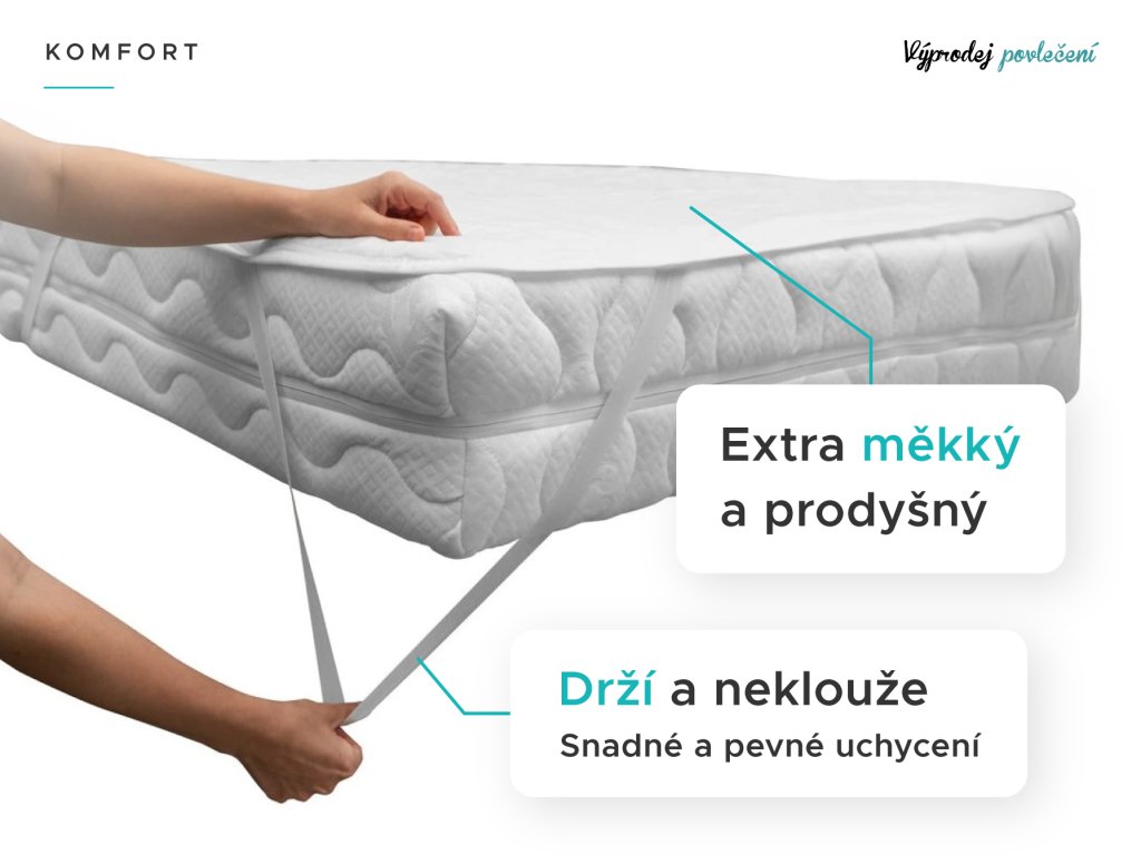 Ochrana matrace je důležitější, než si myslíte. Každý člověk, ať dítě nebo dospělý se přirozeně potí. Během noci vypotíme až litr potu, který se vsákne do prostěradla a jádra matrace. Chránič matrace celkově zvýší hygienu lůžka. Navíc chrání před mechanickým poškozením, znečištěním, roztoči, potem i močí. Jedná se o skvělého pomocníka na dětské postýlky nebo první postele. Své místo má také u dospělých jako běžná ochrana matrace, u seniorů nebo dlouhodobě nemocných, kteří jsou upoutáni na lůžko. Voděodolný chránič vytvoří ochrannou a tekutinám nepropustnou vrstvu. Pocitu spánku na igelitu se bát nemusíte, horní vrstva chrániče je vyrobena z mikrovlákna, které je šetrné k pokožce a příjemné na dotek.