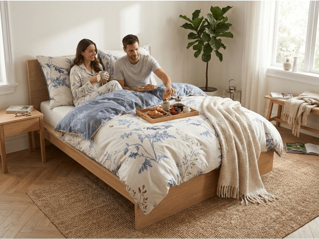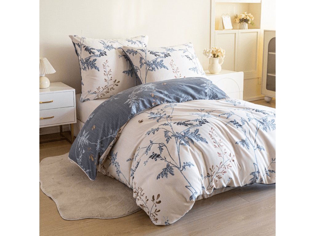 Mikroflanelové povlečení je vyrobené z jemných polyesterových vláken, která jsou speciálně počesaná, aby získala hebký a hřejivý povrch připomínající klasický bavlněný flanel. Díky tomu je povlečení měkké na dotek, dobře izoluje teplo a zároveň je velmi lehké a rychleschnoucí. Výhodou je i snadná údržba, protože se nemačká, rychle schne a není nutné ho žehlit. Je tak ideální volbou pro všechny, kdo hledají pohodlné a praktické povlečení vhodné na chladnější období.