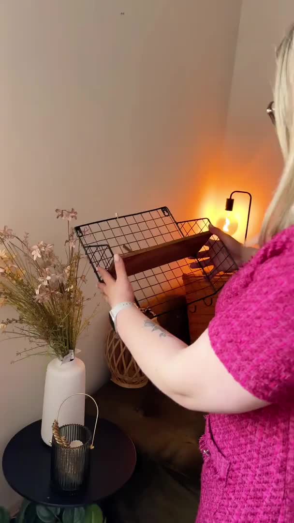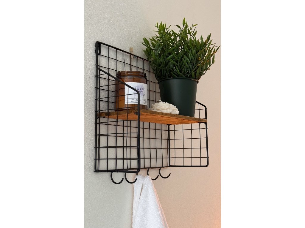 Nástěnná police s 5 háčky LOFT 28x30 cm