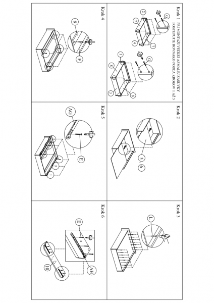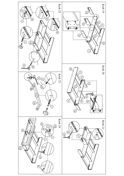 Pokud dřevěné kolíky nepůjdou snadno zasunout do otvorů, pak můžete použít kladívko nebo gumovou palici a lehkým poklepáním je vsunout do připravených otvorů. V případě, že dřevěné díly nelze nasadit na dřevěné kolíky, poklepejte na ně pěstí nebo gumovou palicí. Závitové tyčky se šroubují do závitové matice kratším závitem, proti směru hodinových ručiček. Dřevěné kolíky nelepte lepidlem, díly by nešly následně rozmontovat. Také ztratíte možnost postel reklamovat, protože ji znehodnotíte.