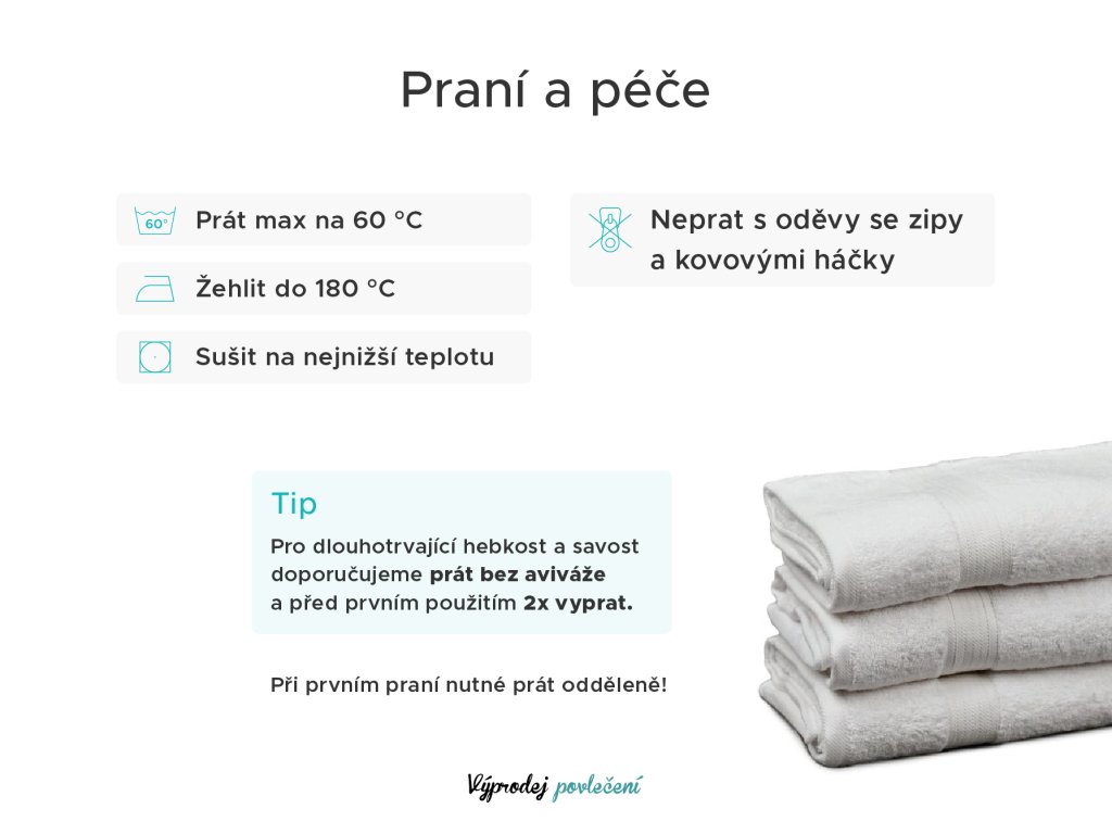 - Pro dlouhotrvající jemnost, hebkost a savost není doporučeno používat aviváž