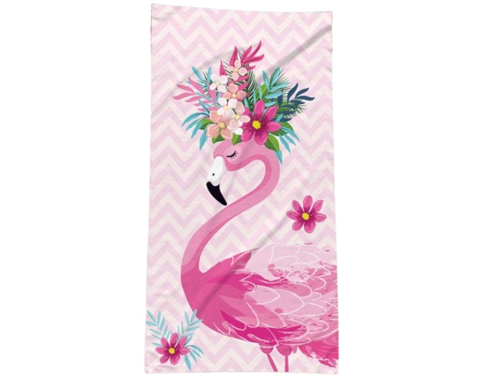 Plážová osuška FLAMINGO WITH FLOWERS 70 x 150 cm barevná, 100% mikrovlákno