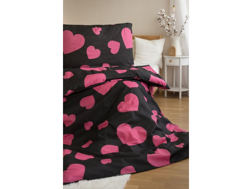 Polybavlněné povlečení HEART PINK, černé