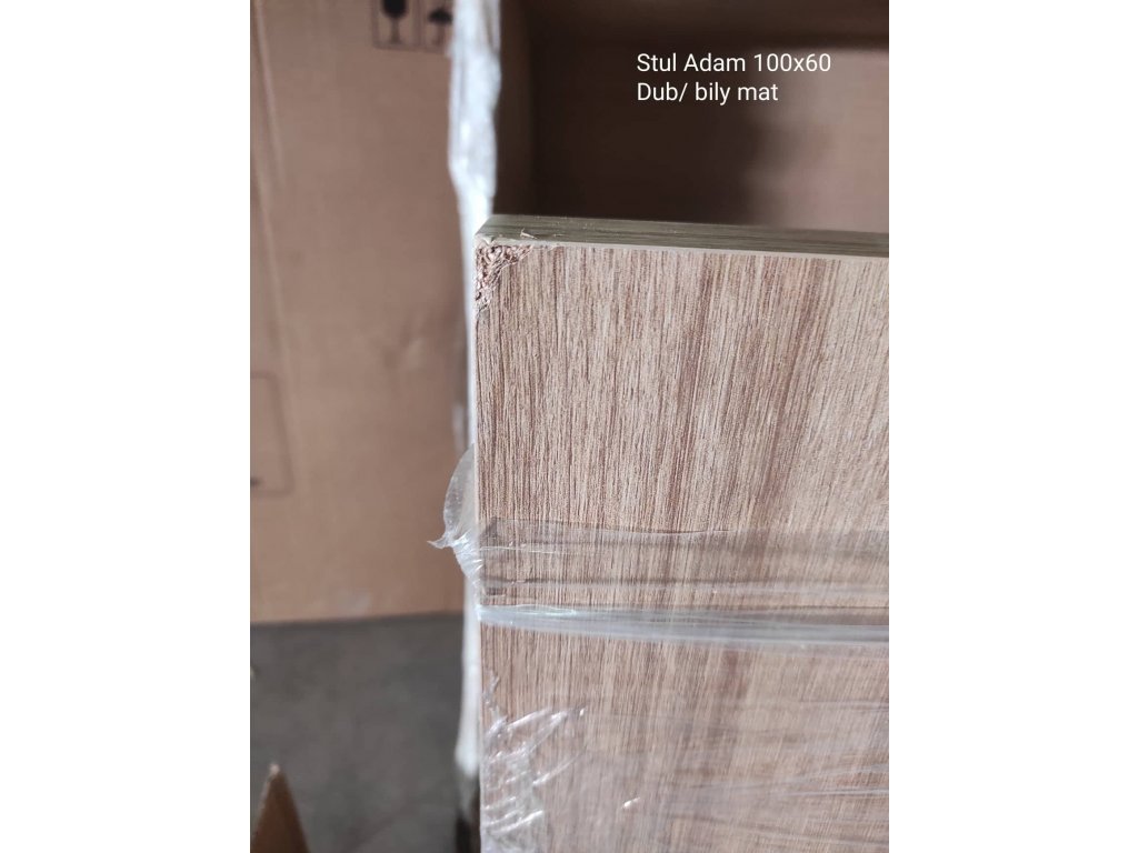 AKCE Bílý jídelní stůl s deskou v dekoru dub ADAM 100x60 II. jakost