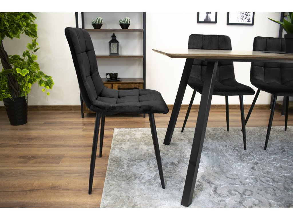 AKCE Černá sametová židle KARA s černými nohami II. jakost