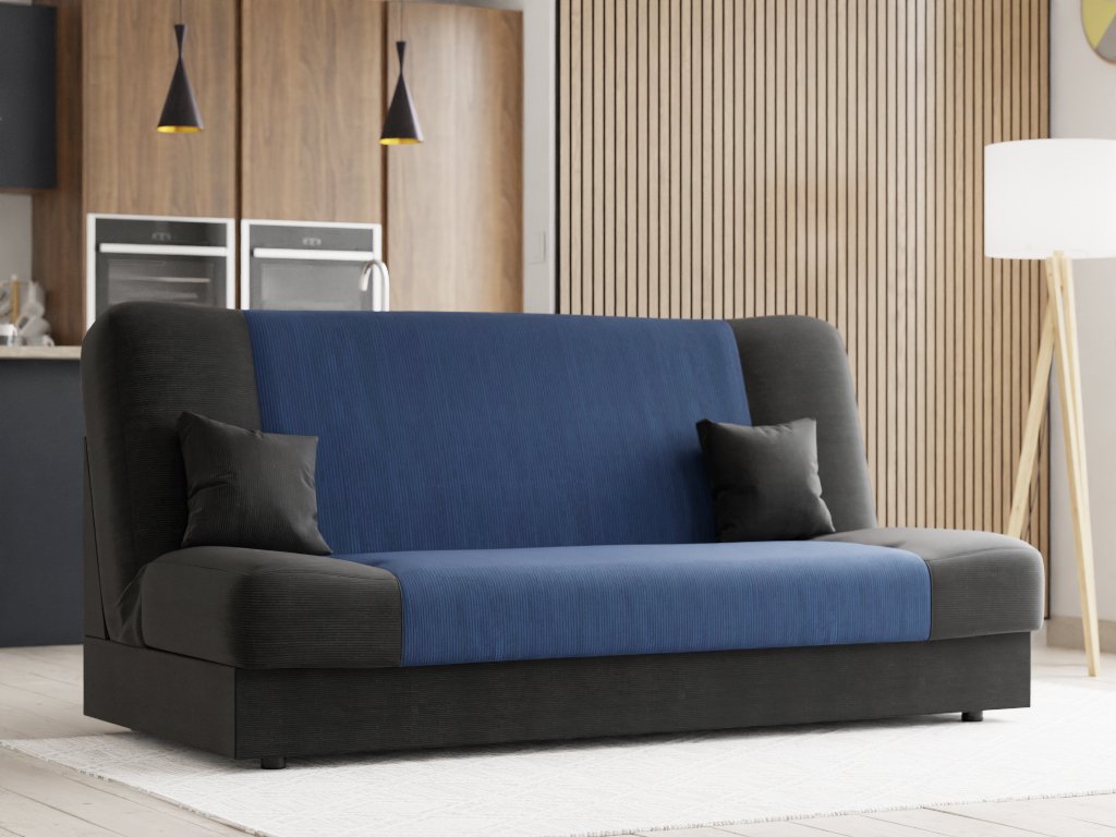 AKCE Modro-černá manšestrová rozkládací pohovka RUBY + 2 polštářky zdarma II.jakost
