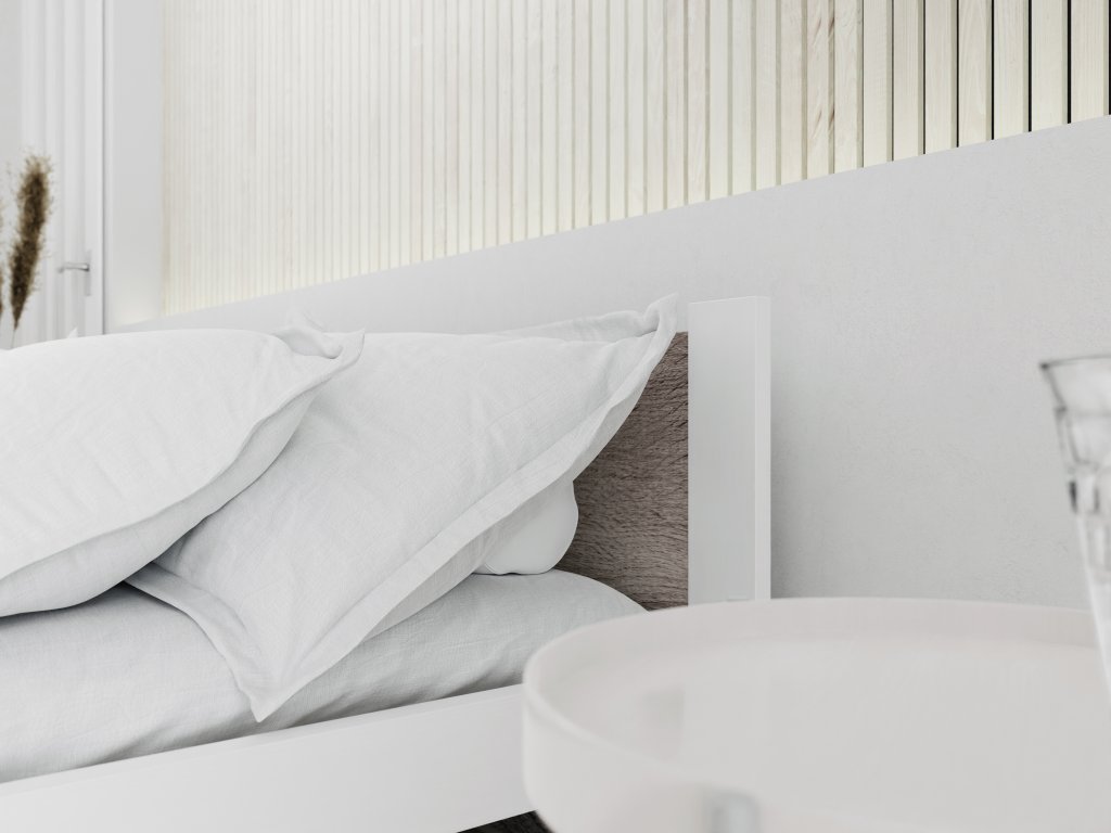 Moderní interiér a čistá linie vám pomůže vytvořit postel v bílé barvě. Tato neutrální barva je oblíbená mnoho let a opět se vrací na pomyslnou první příčku oblíbenosti. Působí svěže a vzdušně, snadno ji sladíte s jinými odstíny a tóny i tmavších barev. Ložnice bude působit relaxačně a klidně.