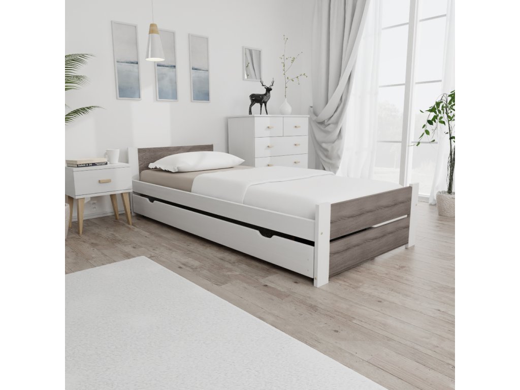 AKCE Postel IKAROS DOUBLE 90 x 200 cm, bílá/dub lanýž II.jakost