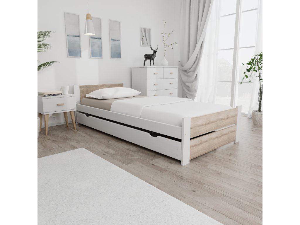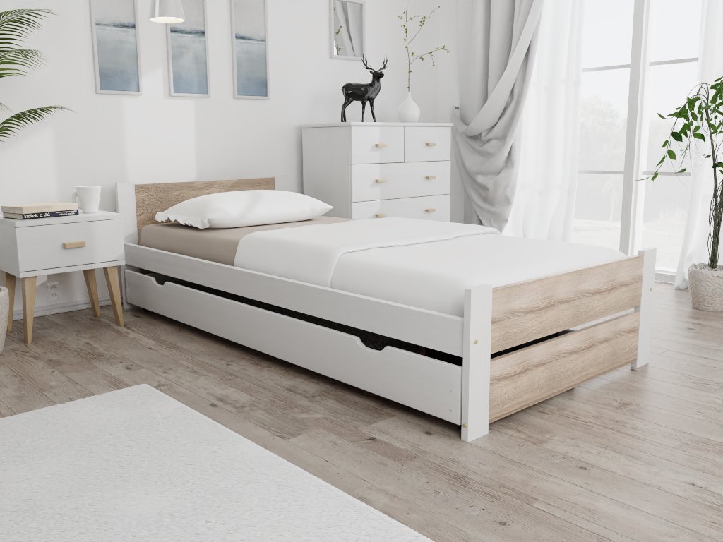 AKCE Postel IKAROS DOUBLE 90 x 200 cm, bílá/dub sonoma II. jakost