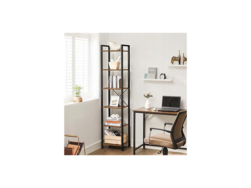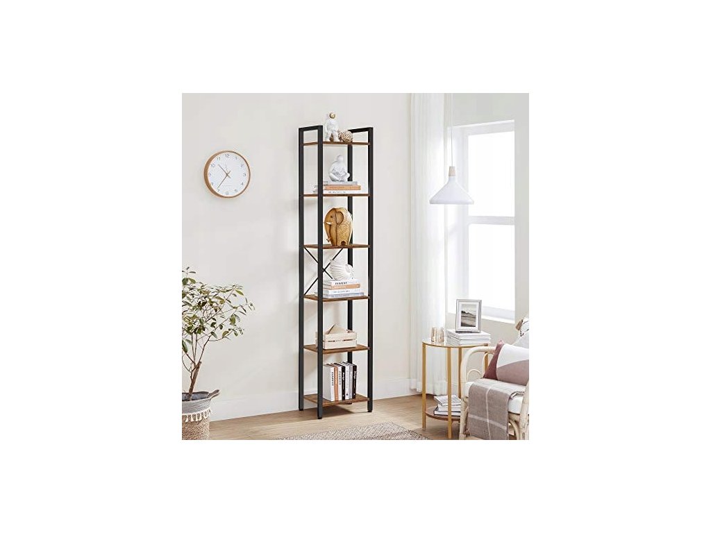 AKCE Regál TAYLOR hnědý s černou konstrukcí, 6 polic II. jakost