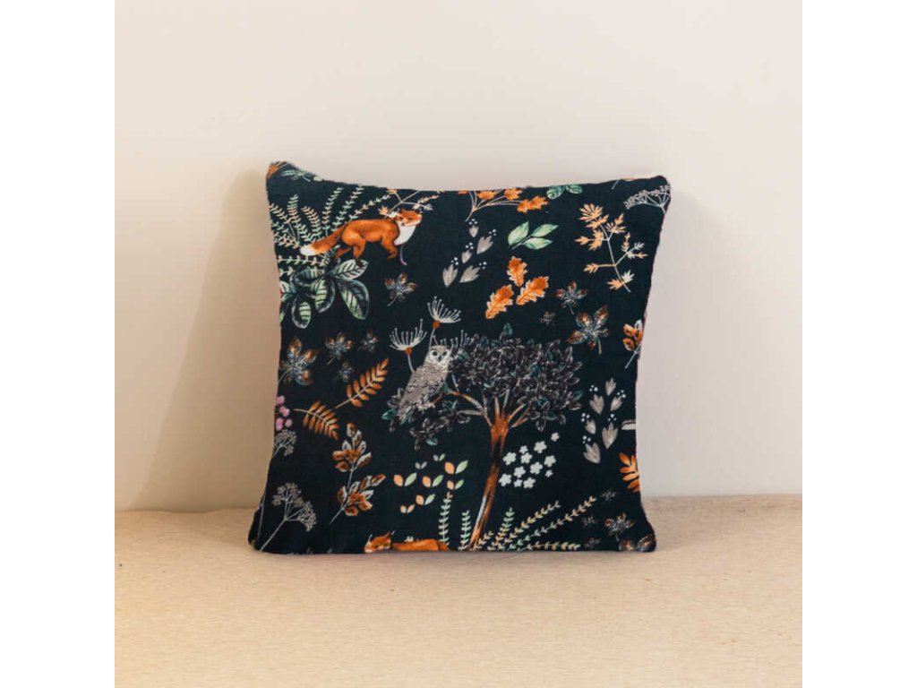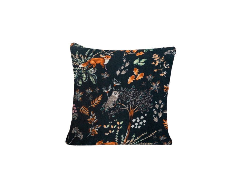 Mikroplyšový povlak na polštářek LIŠKA A ZAJÍC 45x45 cm, tmavě zelený