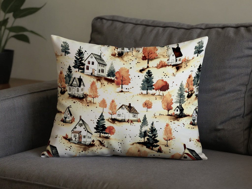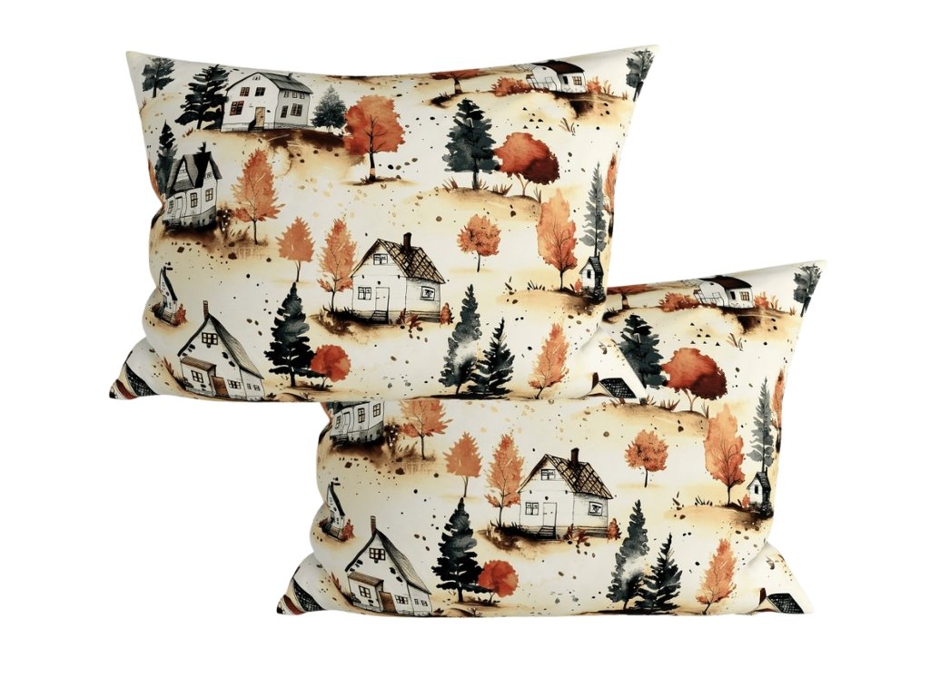 Sada 2 ks dekoračních povlaků na polštář AUTUMN VILLAGE 50x70 cm, barevná