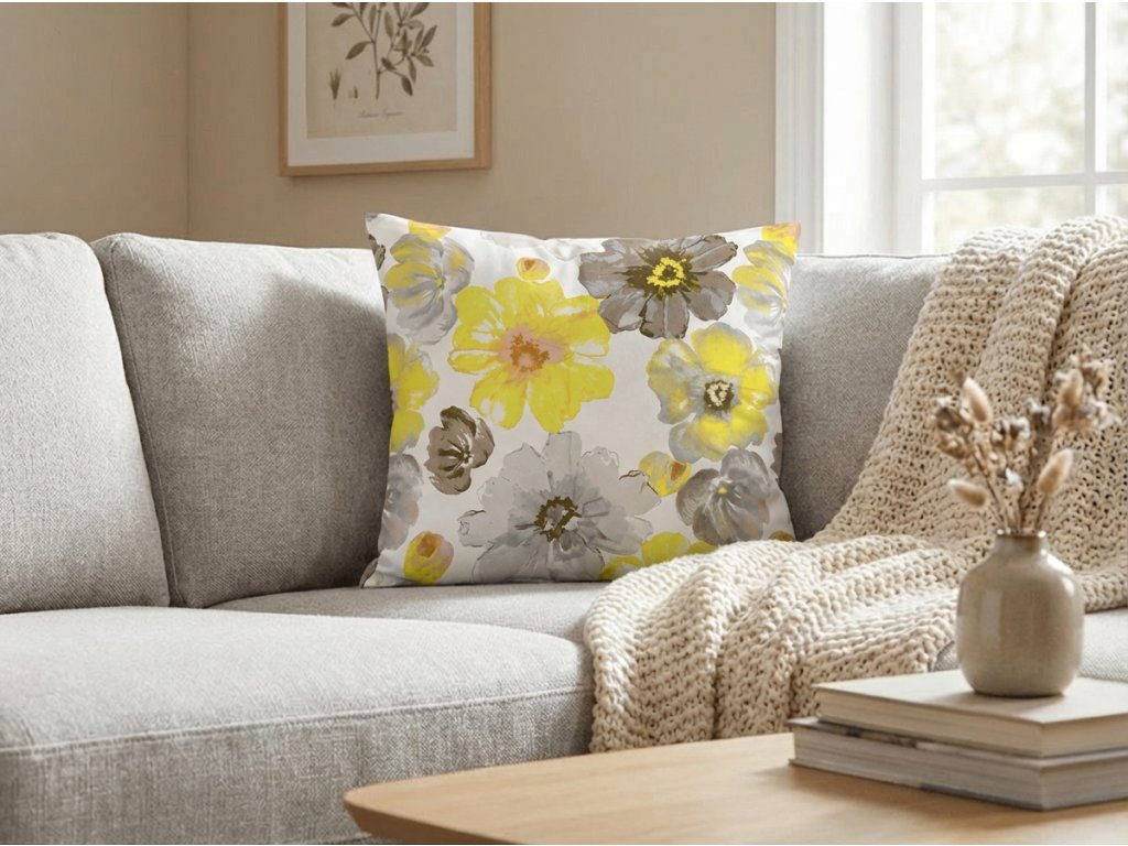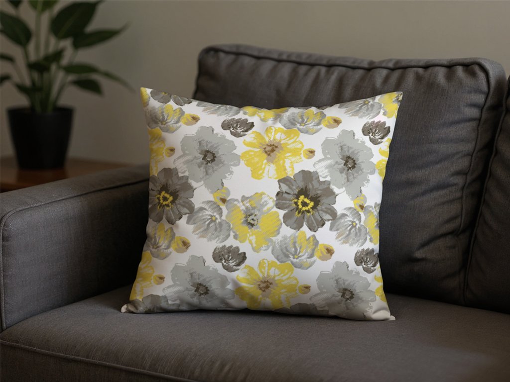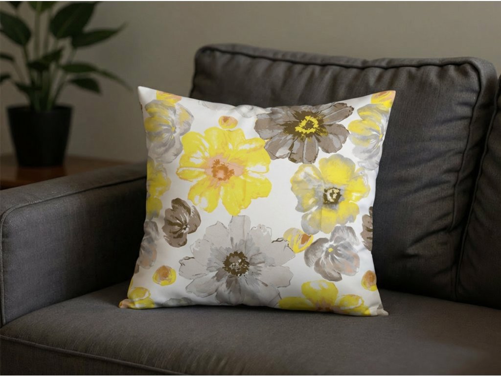 Sada 2 ks dekoračních povlaků na polštář z mikrovlákna FEONELLE 45x45 cm, žluto-šedá