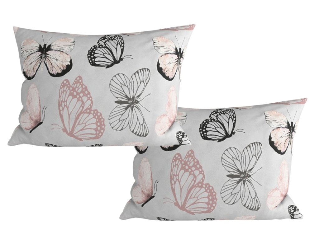 Sada 2 ks dekoračních povlaků na polštář z mikrovlákna MY BUTTERFLY 50x70 cm, světle šedá